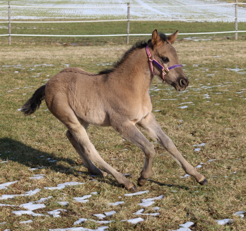 Franziskas Erfolgsstute "Kings Finest Joy" (Halbschwester von unserem Blackberry) hat ein wunderschönes Buckskin-Stutfohlen zur Welt gebracht![]()